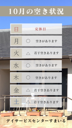 10月の空きはこちらのようになっておりますm(*_ _)m