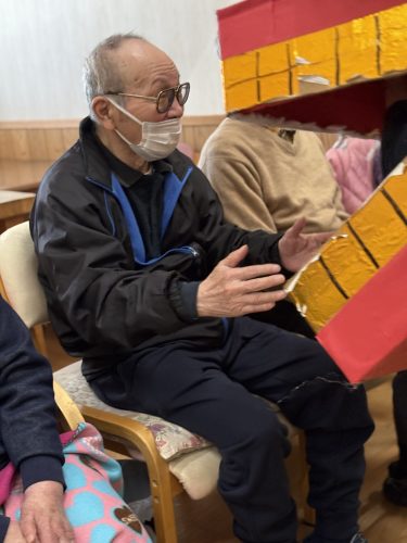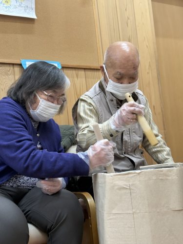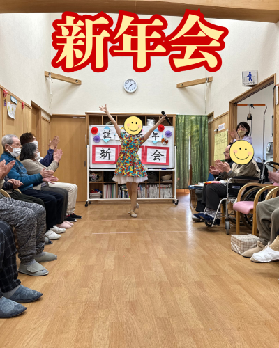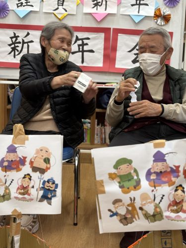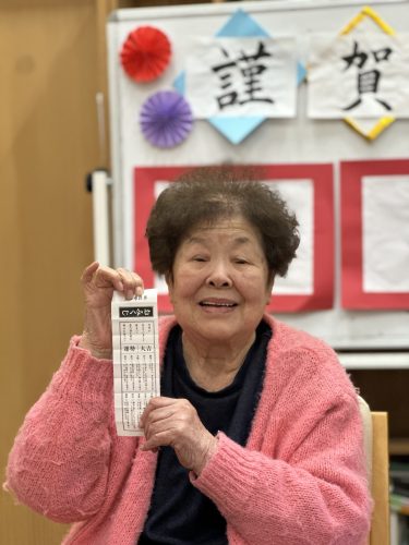 レクリエーションでは、餅つき、おみくじ、獅子舞と内容もてんこ盛り(´・ω・`)